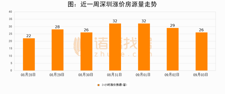 根据诸葛找房数据显示,深圳24小时涨价房源量为26套,较09月02日减少3套,环比下降10.3%。与此同时,涨价房源占比小幅回落,对于购房者来说是一个入市窗口期,购房者可抓住时机入市。