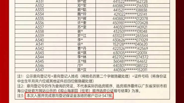 347批客选258套房,前海观山海家园名册公示!今日摇号