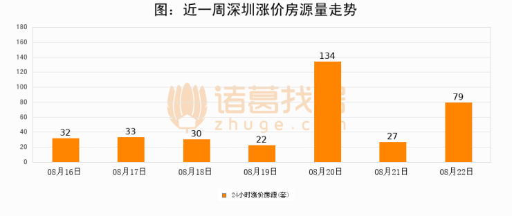 根据诸葛找房数据显示,深圳24小时涨价房源量为79套,较08月21日增加52套,环比上涨192.6%。与此同时,涨价房源占比小幅扩大,业主信心有所提升。