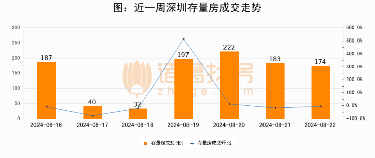 从存量房来看,2024年08月22日深圳存量房单日成交174套,比昨日减少9套,环比下降4.9%。从近一周存量房成交来看,深圳存量房日均成交套数为147套,08月22日单日成交174套,高于近一周平均水平18.4%。