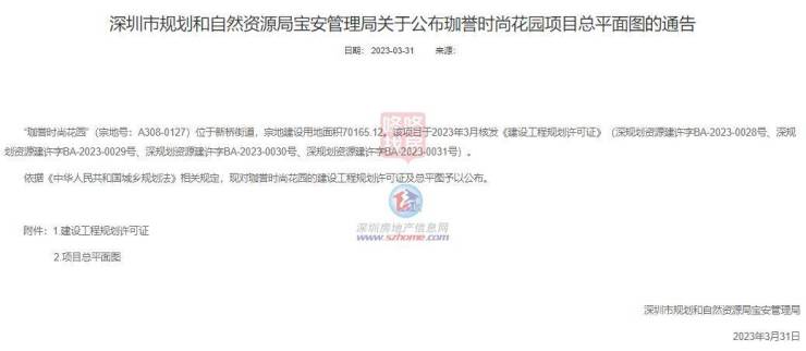 深圳首个共有产权房来了?近日,深圳市规划和自然资源局宝安管理局发布《关于公布珈誉时尚花园项目总平面图的通告》。