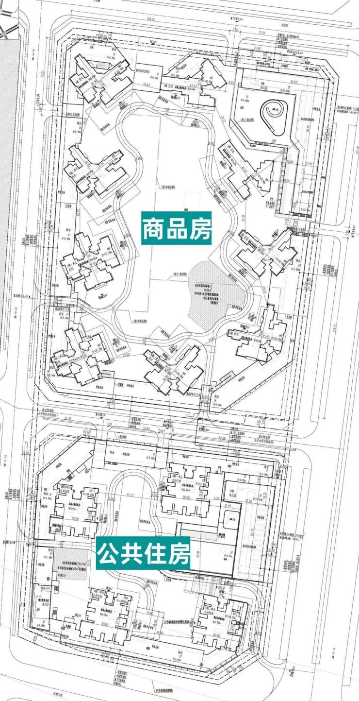根据建设工程规划许可证和总平面图显示,项目地块(宗地号:A308-0127)位于新桥街道,总建面56万㎡,普通商品住宅位于北侧地块;共有产权住房位于南侧地块。