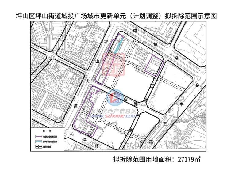 江岭广场片区城市更新单元位于马峦街道,申报主体为深圳市坪山江岭香江股份合作公司,拟拆除范围用地面积125958平方米。
