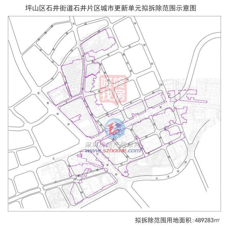 石井片区城市更新单元位于石井街道,申报主体为深圳市坪山石井股份合作公司;拟拆除范围用地面积48.9万平,可以说是妥妥的巨无霸旧改。