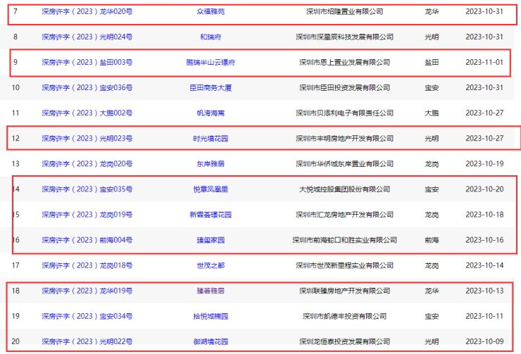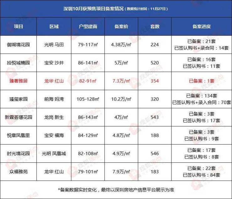 是市场过于冷淡导致的低销现象吗?其实并不然,据深圳房地产信息平台显示,在10月跟臻著雅居相近时期取证的住宅项目有8个,其中不乏光明、宝安、龙岗的项目。