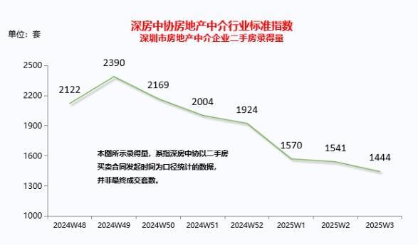 经深房中协统计,2025年第3周全市二手房(含自助)录得1,444套,环比下降6.3%。随着春节假期的临近,近期二手房市场呈现小幅下滑运行态势,市场进入相对平淡期,但周录得量仍超千套。