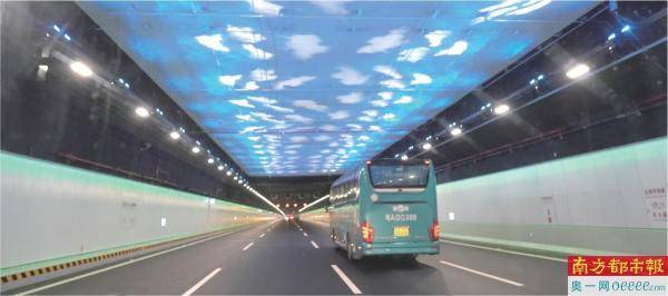 车辆行驶至海底隧道时,两侧绿色灯带映入眼帘。南都记者在现场了解到,这是可智能调节的全彩景观灯带,会根据环境温度、车流状况变色,当发生紧急事件时,灯带由近至远分段显示红、黄、绿色,能够引导人员有序疏散。