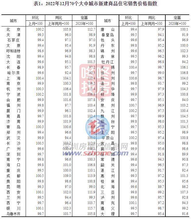 近日,国家统计局公布《2022年12月份70个大中城市商品住宅销售价格变动情况》。