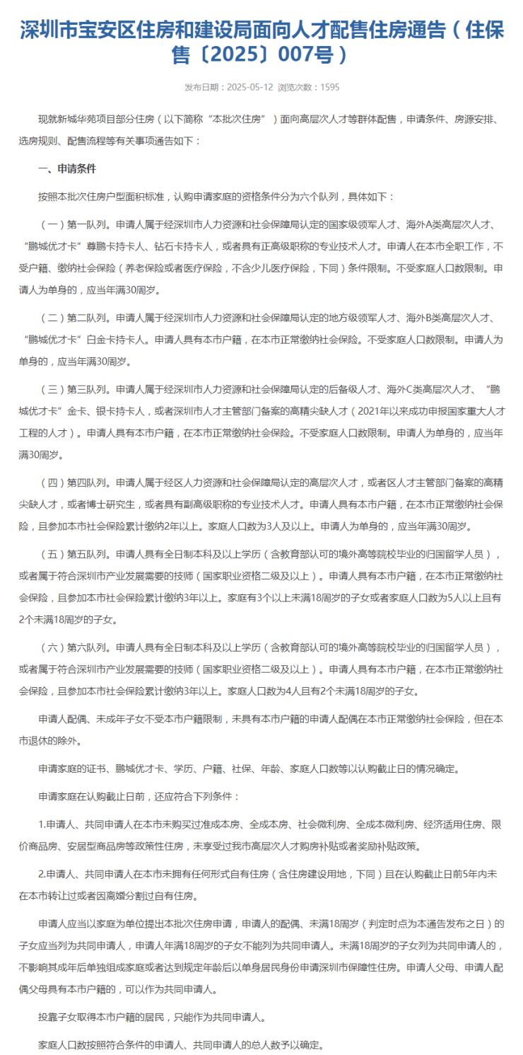 人才房认购条件再放松!宝安192套剩余房源启动配售