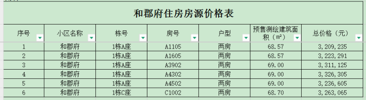 两房总价区间约321-333万,详情如下: