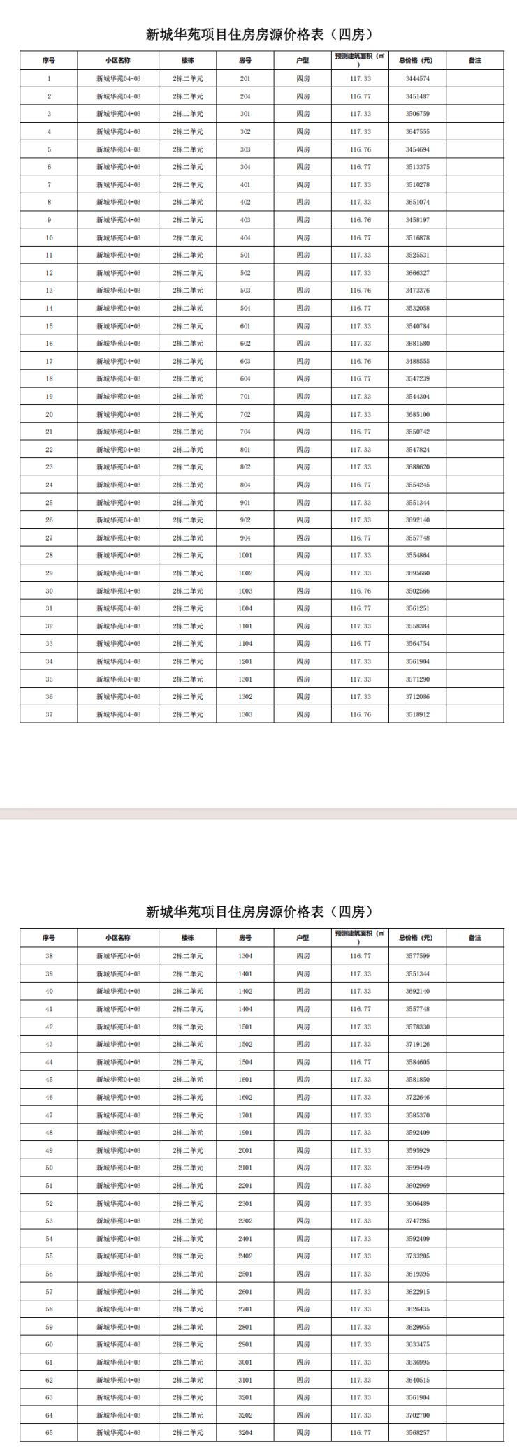 新城华苑-65套4房