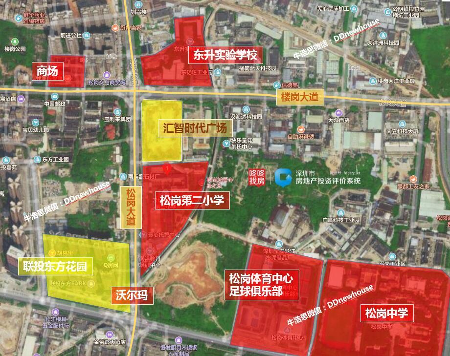 南面毗邻松岗第二小学,距离沃尔玛400米左右距离,北侧是松岗义乌商品城和东升实验学校。在松岗义乌商品城旁边还有一个小商城,距离项目约200米,商城里面有超市和麦当劳、永和豆浆等大牌商家入驻,业态丰富。