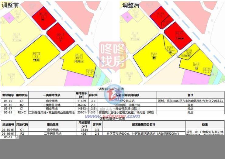 (一)将05-15地块划分为05-15-01、05-15-02两个地块,其中,05-15-01地块面积为3134平方米;05-15-02地块面积为7995平方米,备注“规划”。两个地块用地性质均为商业用地(C1),容积率均为3.5,配套设施均为“—”。