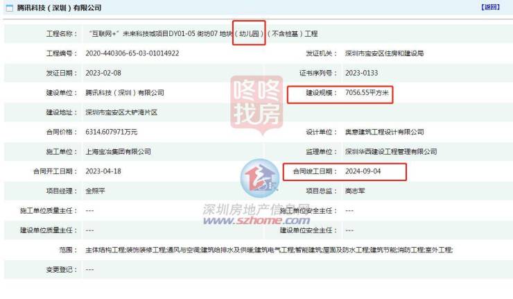 据网友爆料称,“互联网+”未来科技城项目DY01-05 街坊07 地块(幼儿园)(不含桩基)工程将将进入主体结构工程阶段,项目合同开工日期为2023年4月18日,合同竣工日期为2024年9月4日,建设规模7056平方米。