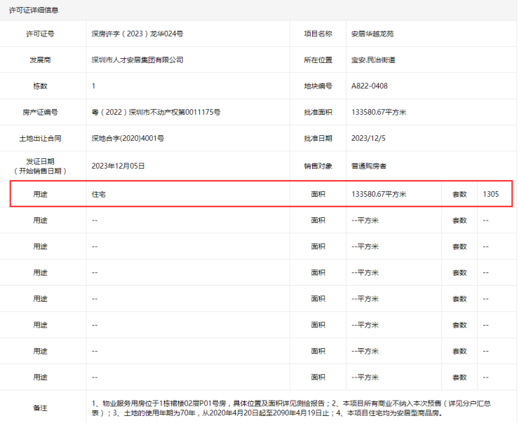 龙华安居华越龙苑已经获批预售证,共备案1305套房源。