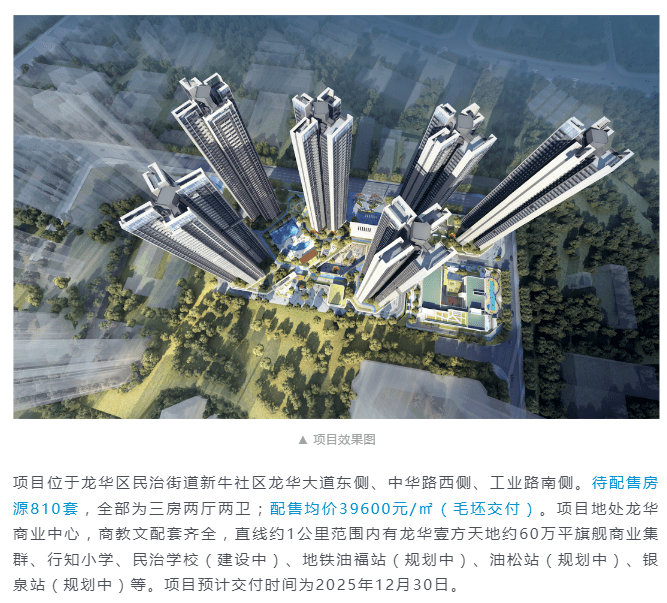 1305套房源!约3.96万/㎡!龙华安居华越龙苑预计近期发车