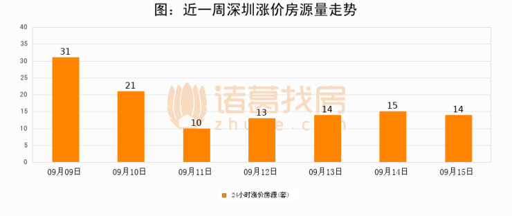 根据诸葛找房数据显示,深圳24小时涨价房源量为14套,较09月14日减少1套,环比下降6.7%。与此同时,涨价房源占比小幅回落,对于购房者来说是一个入市窗口期,购房者可抓住时机入市。