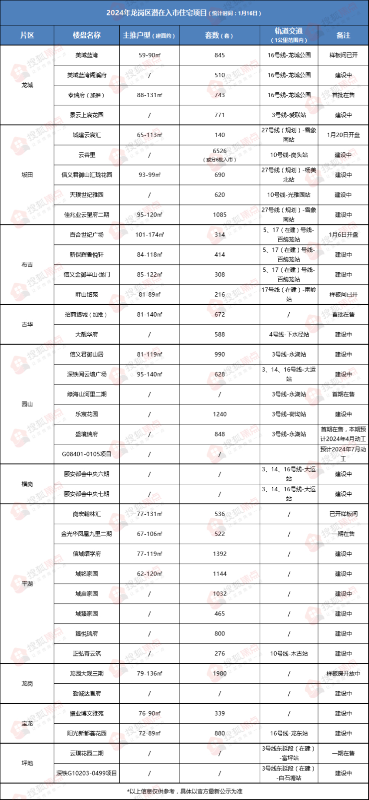 据@血拼深圳楼市不完全统计,2024年龙岗区或有37新盘计划入市,预计总房源量超2万套。