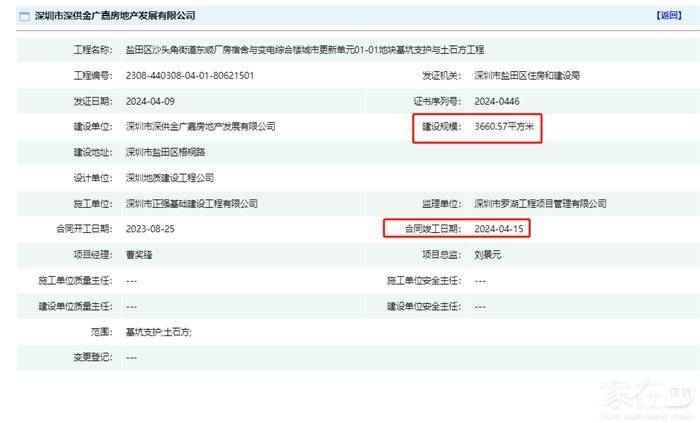 深圳住建局也于近日发布施工许可证,地基将于4月15日完工。