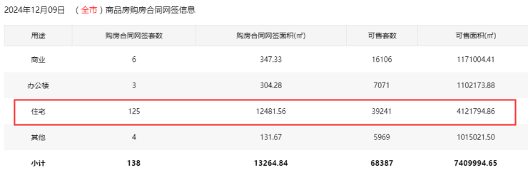 2024年12月9日新房住宅认购网签193套。其中,宝安48套;福田1套;龙岗43套;罗湖10套;南山12套;盐田5套;龙华29套;坪山14套;光明31套;大鹏0套;深汕0套。