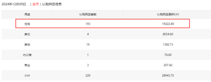 12月新房住宅购房合同网签累计1377套;二手住宅累计成交2699套。