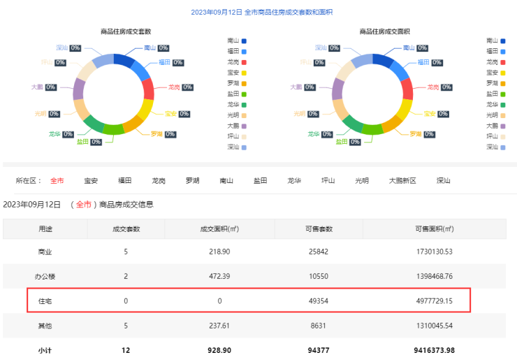 9月12日深圳新房住宅网签0套 二手房住宅网签130套