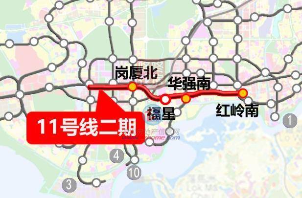 ● 11号线二期:岗厦北站、福星站、华强南站、红岭南站;
