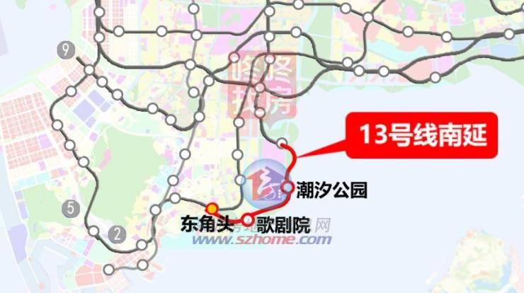 ● 13号线二期南延:潮汐公园站、歌剧院站、东角头站;