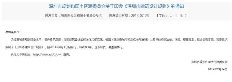 《深圳市建筑设计规则》最早可以追溯到2014年,目的是为了标准化和规范化件数设计,提升建筑品质。