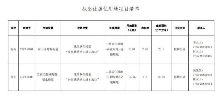 继宝中A001-0219宗地公示挂牌信息后,深圳又公布了拟出让的两宗宅地。