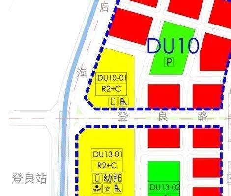 地块DU13-01与原规划南侧两地块及部分规划市政支路合并为一个地块,用地面积调整为22457㎡,用地性质为二类居住用地+商业服务业设施用地,容积率为8.0。配套设施项目包括:便民服务站、文化活动室、社区老年人日间照料中心、社区体育活动场地、社区儿童游戏场地、托育机构、9班幼儿园。