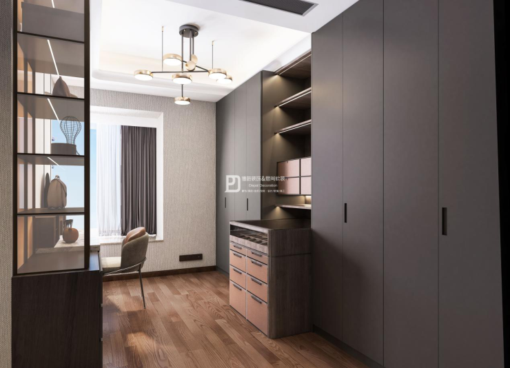 充足的收纳空间,提升了生活的舒适度和便捷性。同时精致的灯具也提升了室内的颜值,整体很简洁美观;体现了主人公不凡的生活品味。