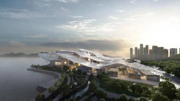 深圳歌剧院项目是深圳市“新时代重大文化设施”之一,位于南山区蛇口东角头片区,总建筑面积约25万平方米,包括2100座的歌剧厅、1800座的音乐厅、1000座的小歌剧厅、500座的多功能剧场等主要展演功能区,以及公共服务和文创体验区、配套及停车设备用房。
