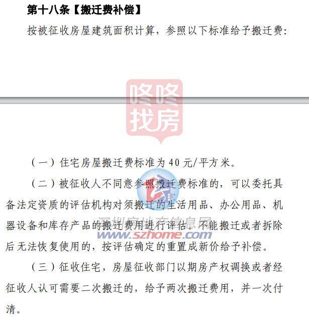 搬迁费补偿方面,住宅房屋搬迁费标准为40元/平。