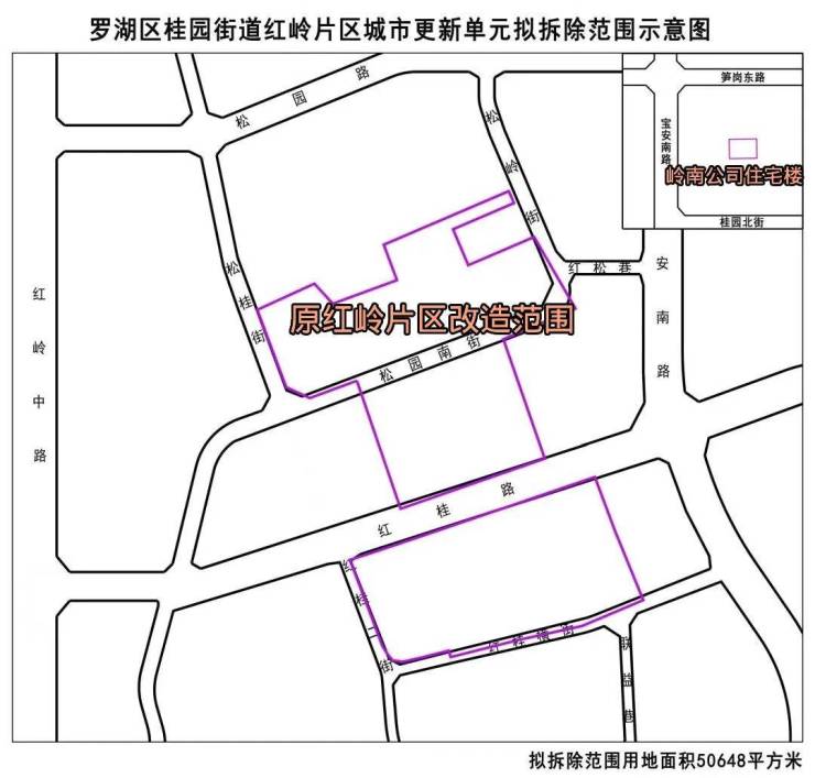 2023年,《深圳市罗湖区城市更新单元计划第三批计划》(草案)公示,仅红岭统筹片区城市更新单元一个项目,拟拆除范围包括岭南公司住宅楼、红岭南住宅区、红桂二街大院和松园小区。