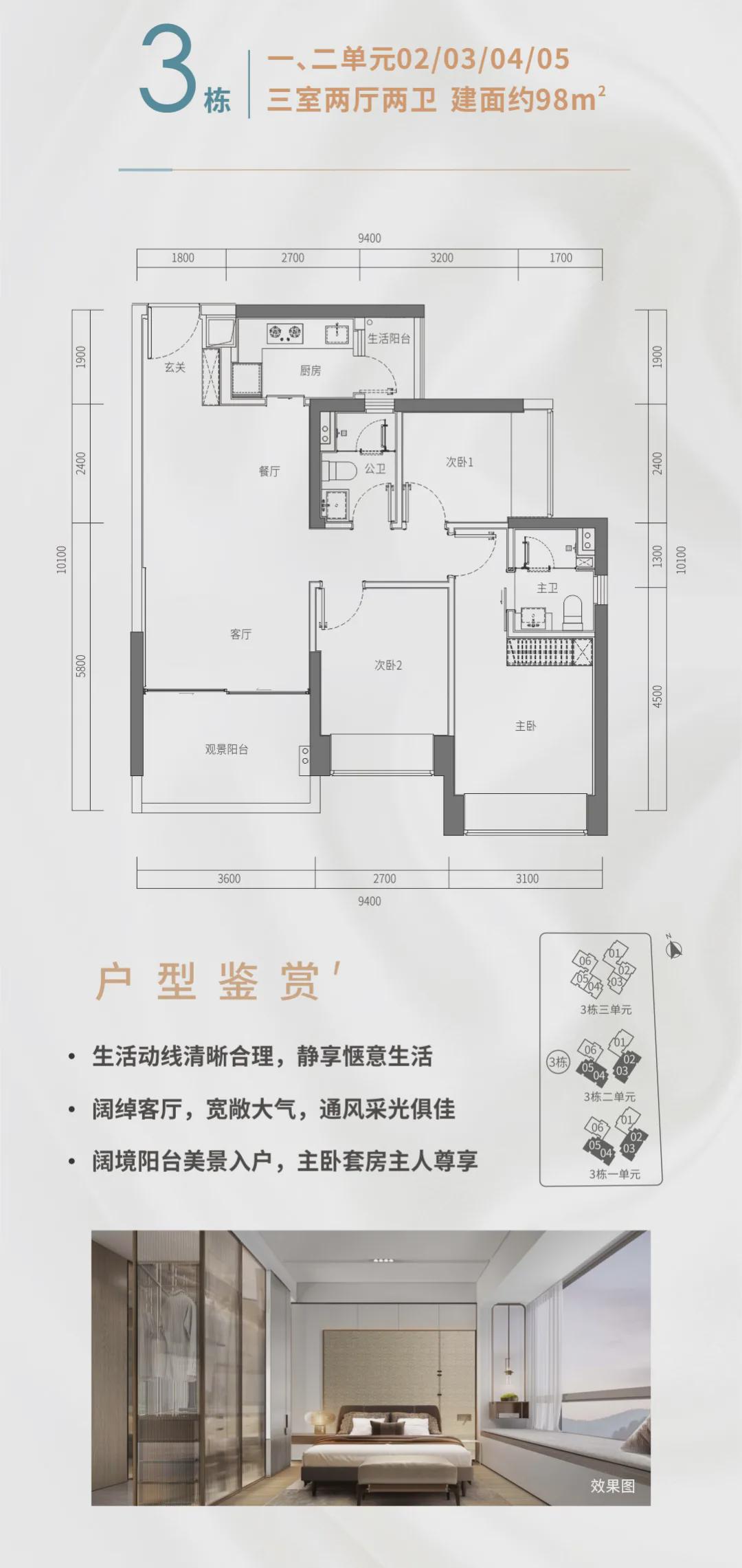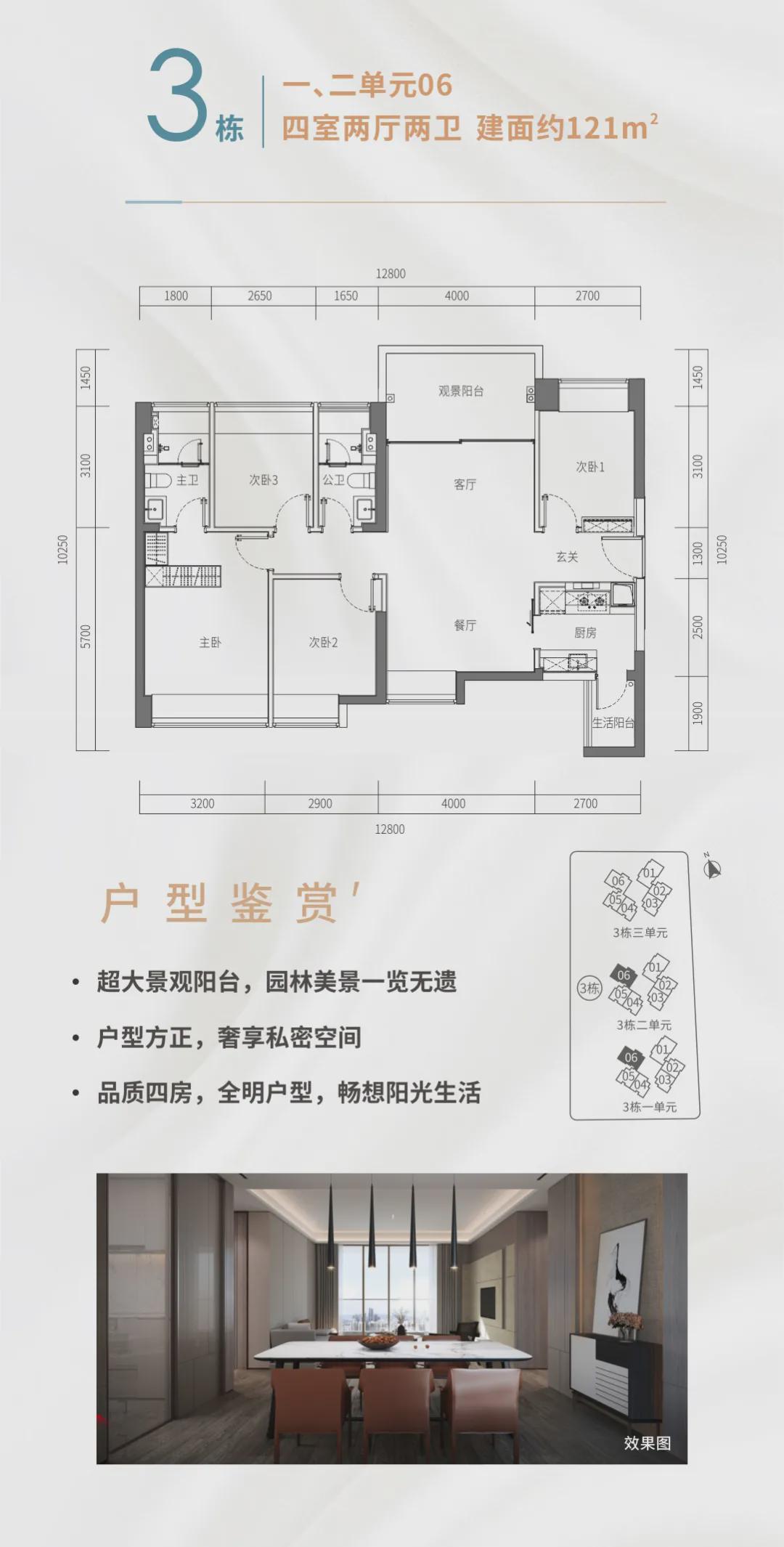 主力户型以建面约98㎡产品为主力,整体面向刚需需求,搭配121-143㎡面积段改善型产品,部分73㎡小户型,此次展示4种户型。