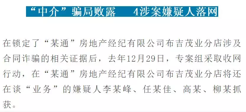 随着专案组循线深入侦查,“某通”房地产经纪有限公司布吉茂业分店涉及的骗局逐步露出水面。