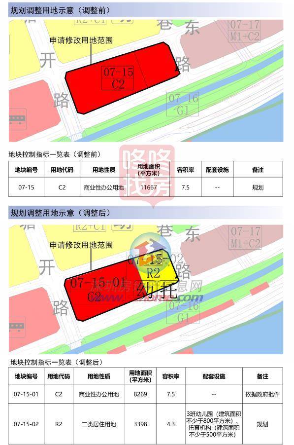 南山片区,今年还涉及一宗小地块调,[大学城地区]法定图则07-15地块拆分成两个地块,用地面积11667平方米,此次由商业调整出了3398平米的二类居住用地,容积率4.3。
