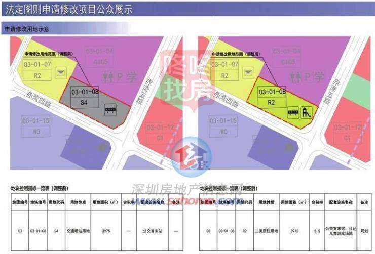 03-01-08地块用地面积为3975平方米,原规划为交通场站用地,后调整为二类居住用地,容积率调整为“5.5”,配套设施“公交首末站”调整为“公交首末站。