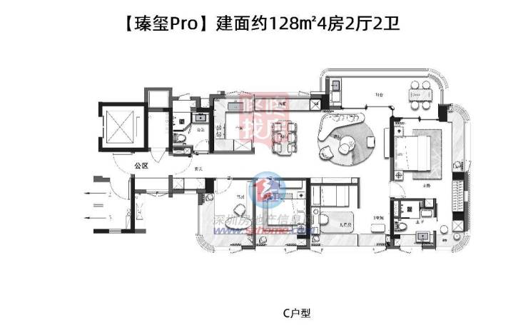 瑧玺Pro款:建面约128㎡4房2厅2卫(约80 套)。
