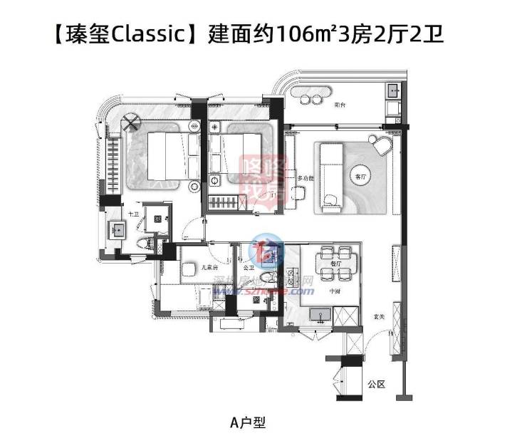 瑧玺经典款:建面约106㎡3房2厅2卫(约160套);
