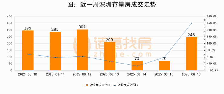 从存量房来看,2025年06月16日深圳存量房单日成交246套,比昨日增加176套,环比上涨251.4%。从近一周存量房成交来看,深圳存量房日均成交套数为211套,06月16日单日成交246套,高于近一周平均水平16.6%。