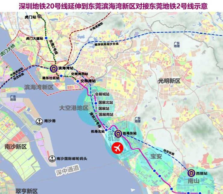 东莞市城市轨道交通第二期建设规划调整(2022-2030)及东莞市2035轨道交通网络规划有一个重大信息:深圳地铁20号线将北延到东莞滨海湾新区。