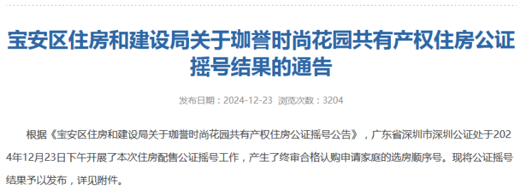摇号结果公告原文:http://www.baoan.gov.cn/bajshej/gkmlpt/content/11/11917/post_11917517.html#22388