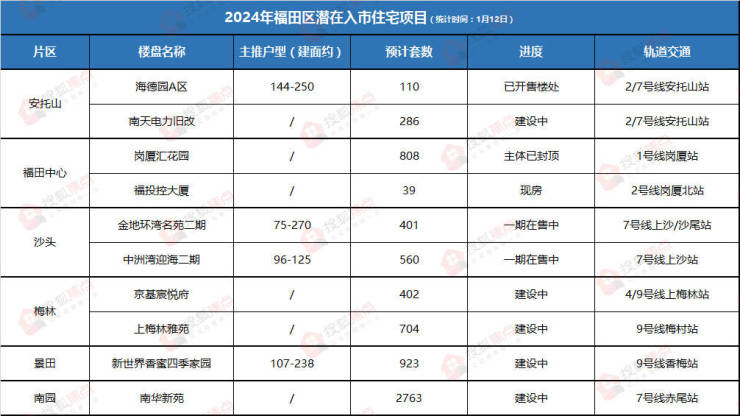 据@搜狐焦点深圳 不完全统计,2024年福田预计有9个新盘,罗湖预计有4新盘入市。