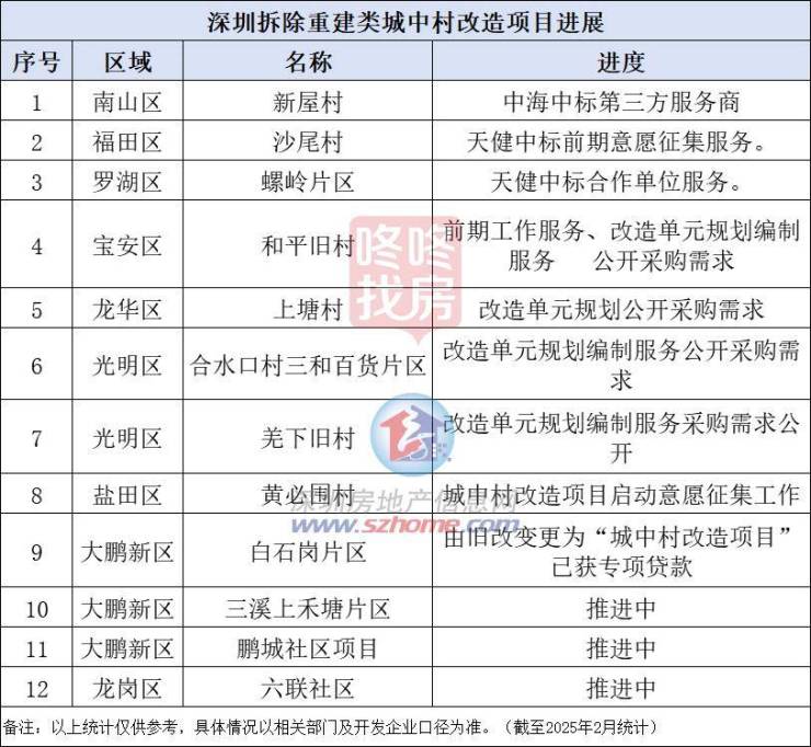 宝安的和平旧村也紧随其后,计划3月采购前期服务和规划编制。