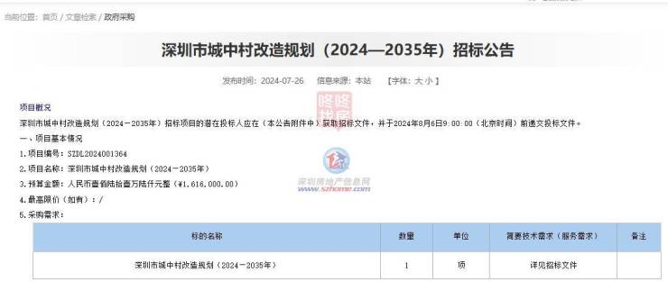 而且值得注意的是,深圳市城中村改造规划(2024—2035年)编制已经于2024年7月招标。也就是说,接下来深圳将有计划出系统的未来10年的深圳城中村改造的规划文件。