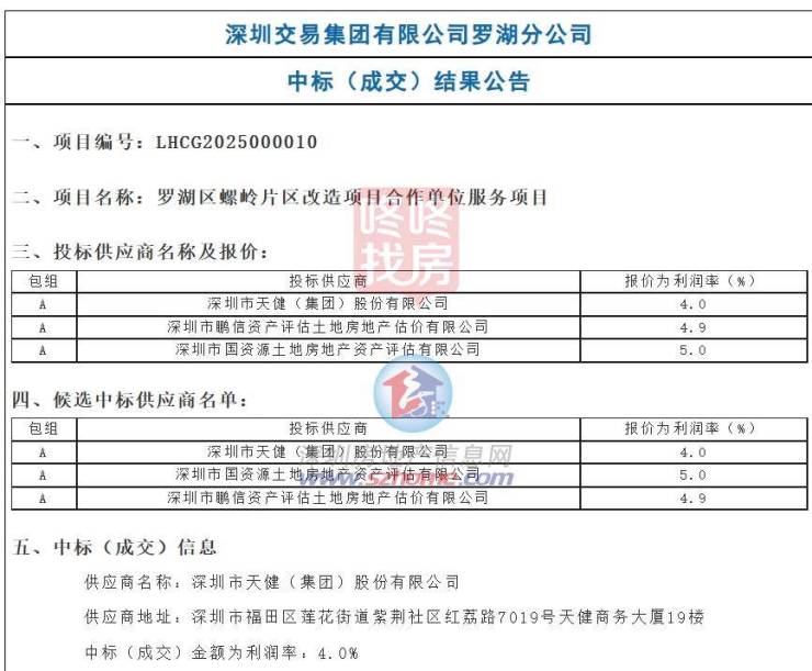 罗湖区螺岭片区城中村改造项目作为深圳市拆除新建类城中村改造第一批试点项目,合作单位服务由天健中标。