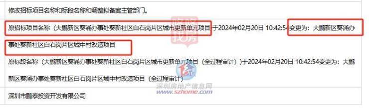 可以看到,项目由原来的旧改项目,已经变更为“城中村改造项目”。