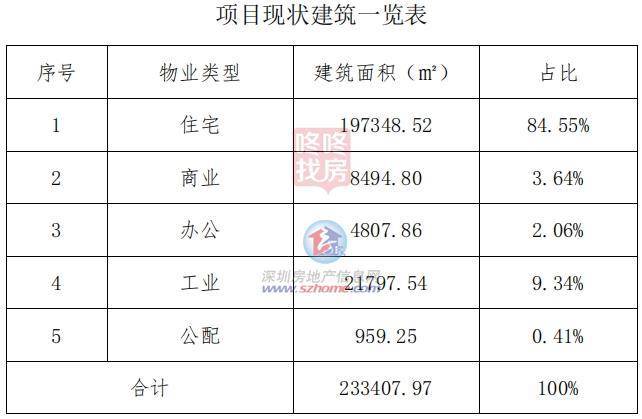 项目总占地面积约12.18万㎡, 其中沙尾村占地约11.02万㎡、金地工业区占地约1.16万㎡。项目改造范围内现状建筑面积合计约48.79万㎡(其中住宅约42.9万㎡,占比约87.9%),现状容积率约4.0。
